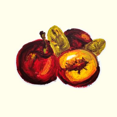 Vor 3 Jahren habe ich Allergien gegen sehr viele Arten von Obst entwickelt. Ich habe innerhalb dieses Projekts jeden Tag mit Ölpastelkreiden Dinge gemalt, die ich deshalb nicht mehr essen kann.